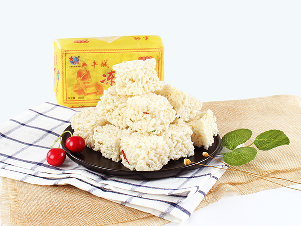 豐城市杜市星球凍米糖廠,是豐城食品生產(chǎn)中的地方傳統(tǒng)名產(chǎn)品。相傳已有兩百多年的生產(chǎn)歷史,以“江南小切,而出名。每年中秋一過,農(nóng)村家家戶戶把糯米飯涼干,炒成爆花米,用米糖拌粘,切成塊塊,待客解茶。這種糕點(diǎn)叫做“炒米糖”、“米花糖塊”。更講究者,用糯米飯做成凍米“干飯”,再用清茶油煎泡“干飯”,使“干飯,變成爆花米,再用飴糖粘結(jié),冷卻后用薄刀切成小塊,前后經(jīng)過半成...